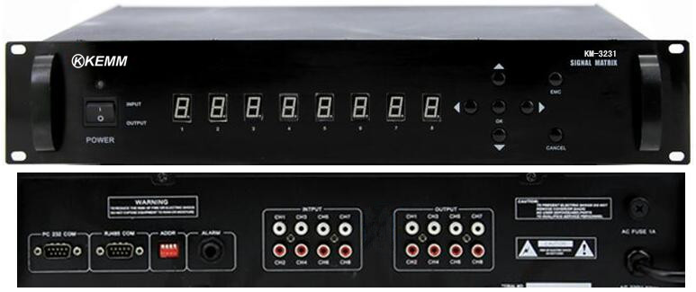 2、設(shè)有8路(音源輸入)×8路(功放輸出)矩陣信號控制功能