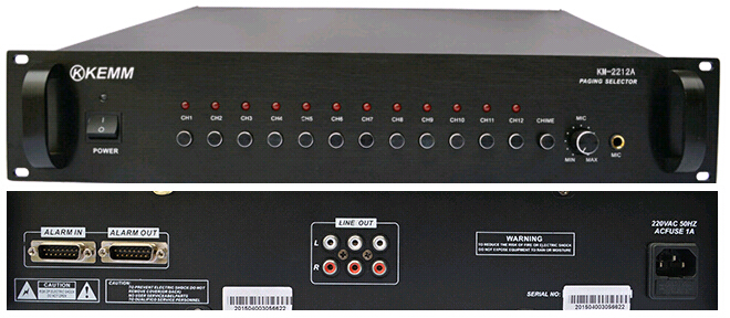 產(chǎn)品用途 將廣播進(jìn)行分區(qū)及報警自動轉(zhuǎn)換功能 分區(qū)尋呼,可單獨(dú)/全區(qū)進(jìn)行尋呼喊話,且不影響其他分區(qū)的音樂播放 產(chǎn)品功能特點(diǎn) (描述產(chǎn)品的功能,性能) 1、12通道分區(qū)尋呼 2、12通道報警輸入/激活輸出 3、具有遙控接口 4、內(nèi)置鐘聲發(fā)生器 5、1路話筒輸入、2路線路輸入 6、具有話筒優(yōu)先功能