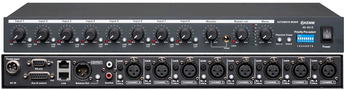 6;每個話筒通道都可獨立切換成優(yōu)先預設模式。