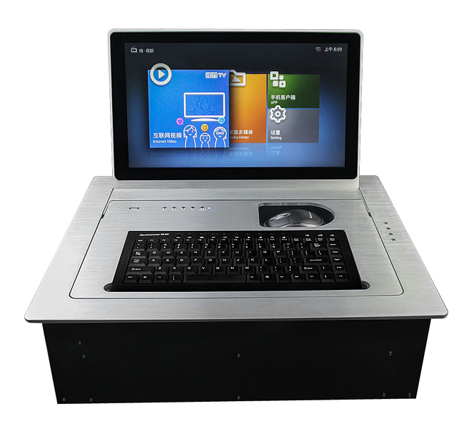 3、產(chǎn)品集成隱藏式電腦,升降托盤上帶有鼠鍵、電腦開關(guān)、USB集成在翻轉(zhuǎn)器上,辦公更加方便快捷