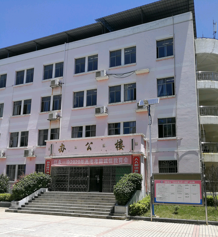 江永縣第一中學(xué)創(chuàng)立于1926年,前身為永明縣立初級中學(xué), 1978年成為零陵地區(qū)重點中學(xué),2000年下期由完全中學(xué)過渡為高級中學(xué),2005年6月,被省教育廳批準(zhǔn)為湖南省示范性普通高級中學(xué)。學(xué)校先后被上級部門授予 “湖南省園林式單位”“湖南省文明衛(wèi)生單位”“湖南省綠色學(xué)?!薄坝乐菔薪逃|(zhì)量進步獎”“永州市關(guān)心下一代工作先進單位”“湖南省中小學(xué)現(xiàn)代教育技術(shù)實驗學(xué)校”等稱號。