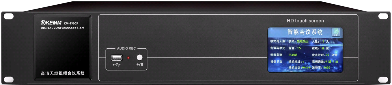 ★前面板配置有4.5寸觸摸液晶高清真彩顯示屏,具有參數(shù)設(shè)置,內(nèi)置功能菜單,可進(jìn)行會議管理功能。