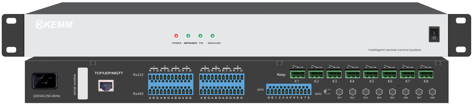 3、支持TCP/UDP 、IR、RS232、RS485、繼電器控制。